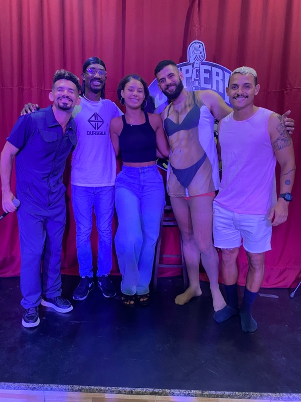 No show, além da apresentação solo de Uel, também aconteceu a participação dos comediantes Yuri Amanso, Wellington Santos e Marcos Machado, que garantiram muitas risadas ao longo da noite. Foi minha primeira vez assistindo a um espetáculo de stand-up ao vivo, e na minha cidade. A experiência foi surpreendente! O formato interativo do show tornou tudo ainda mais participativo, já que os comediantes não apenas apresentavam suas piadas, mas também interagiam com o público, criando momentos espontâneos e únicos.